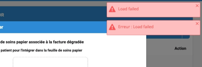 Lors de la génération du justificatif SCOR, le message "Load failed" apparaît. Que dois-je faire ?