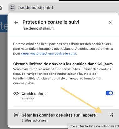 Cliquez ensuite sur Gérer les données des sites sur l'appareil :
