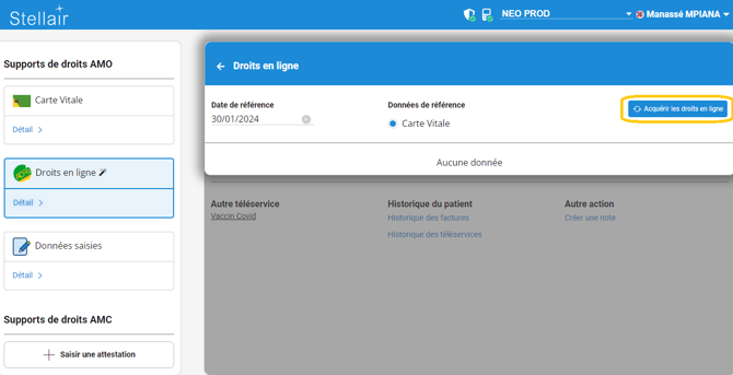 - 🖱️ Cliquez sur Détail du Support de droits AMO Droits en ligne